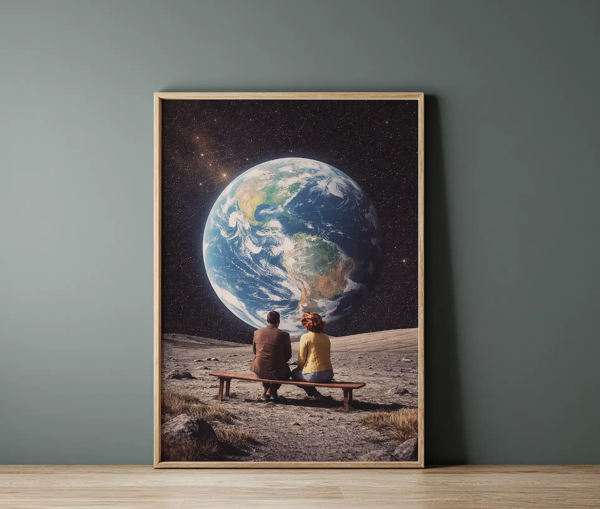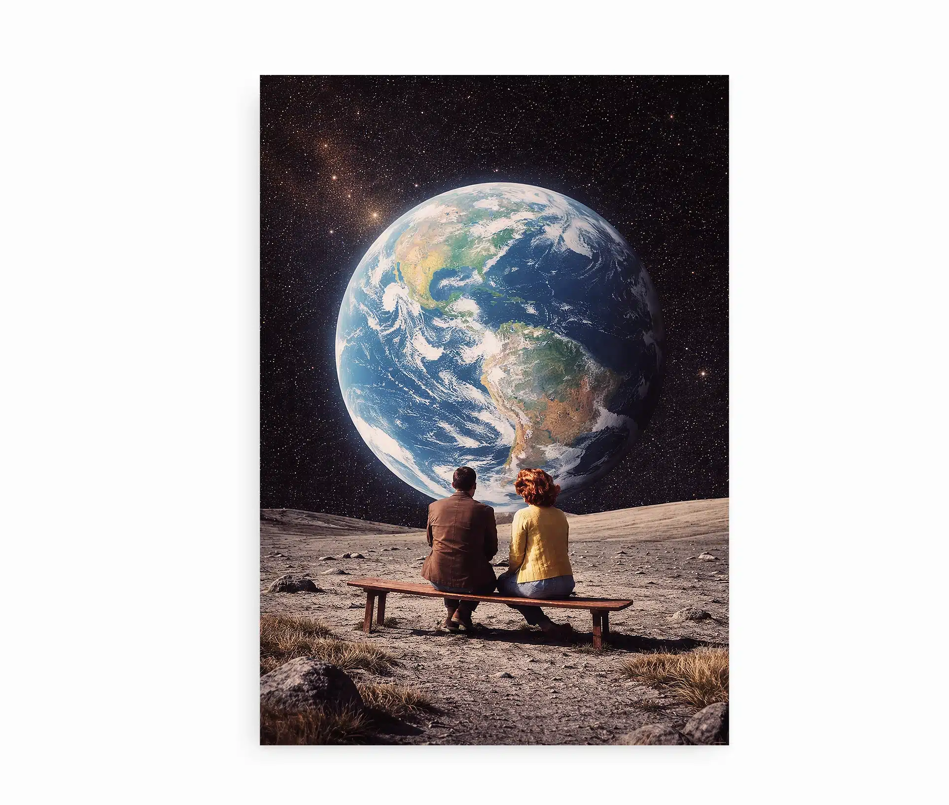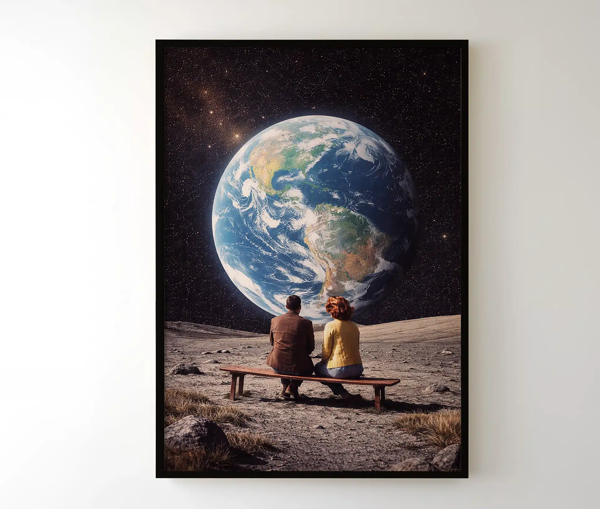 Der findes øjeblikke, hvor verden føles uendelig – og alligevel helt lille, når man deler den med den rette. A place to call home plakat indfanger netop den følelse. Motivet viser et par siddende side om side, mens de betragter jorden svæve i det stjerneklare univers. Et stille øjeblik. En fælles horisont. En påmindelse om, at hjem ikke kun er et sted – men en følelse.