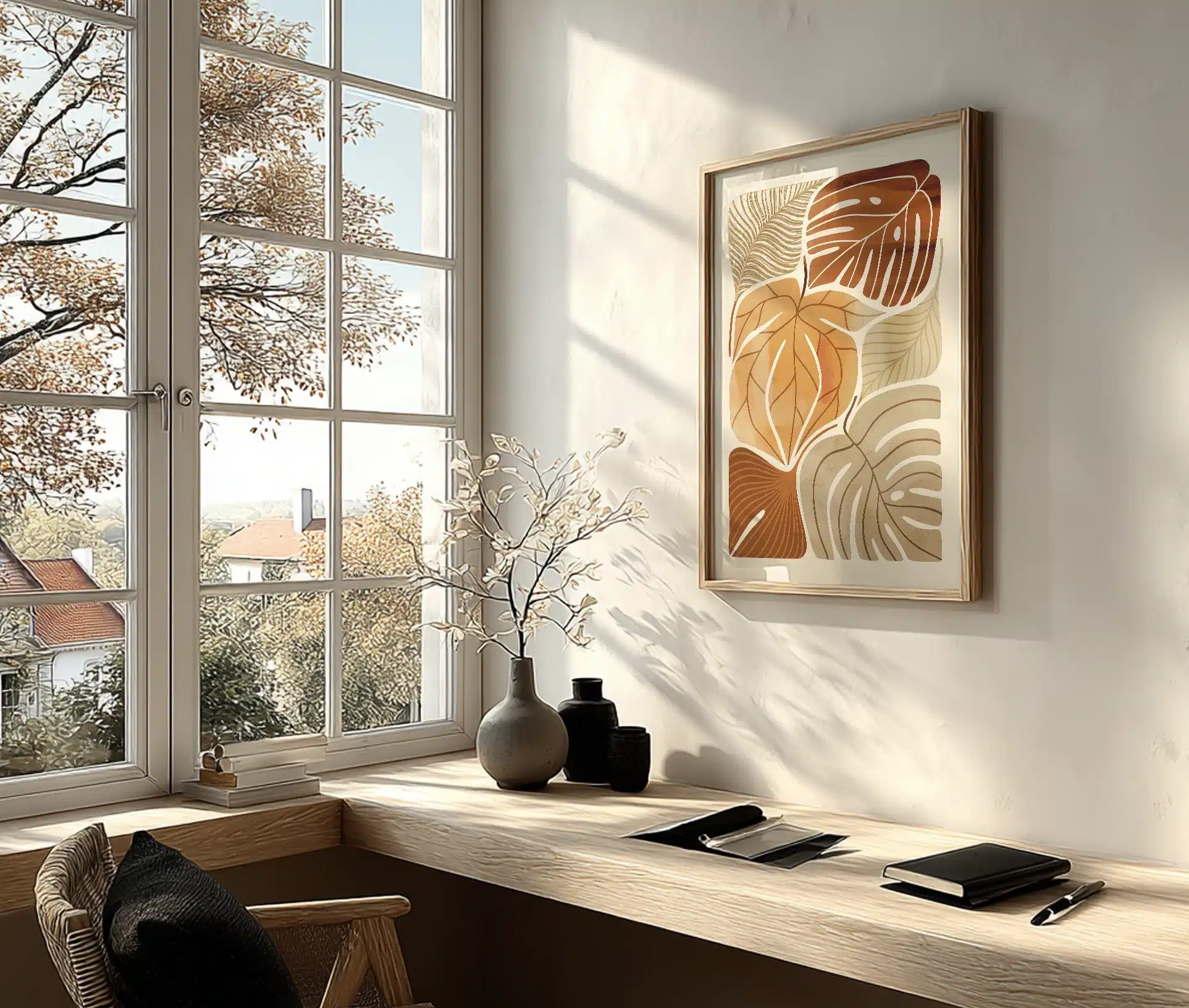 Plakaten passer perfekt til dig, der elsker naturens æstetik, men foretrækker et moderne og stilrent udtryk. Den fungerer smukt alene, men kan også kombineres med andre naturinspirerede motiver i varme toner for en sammenhængende vægdekoration.