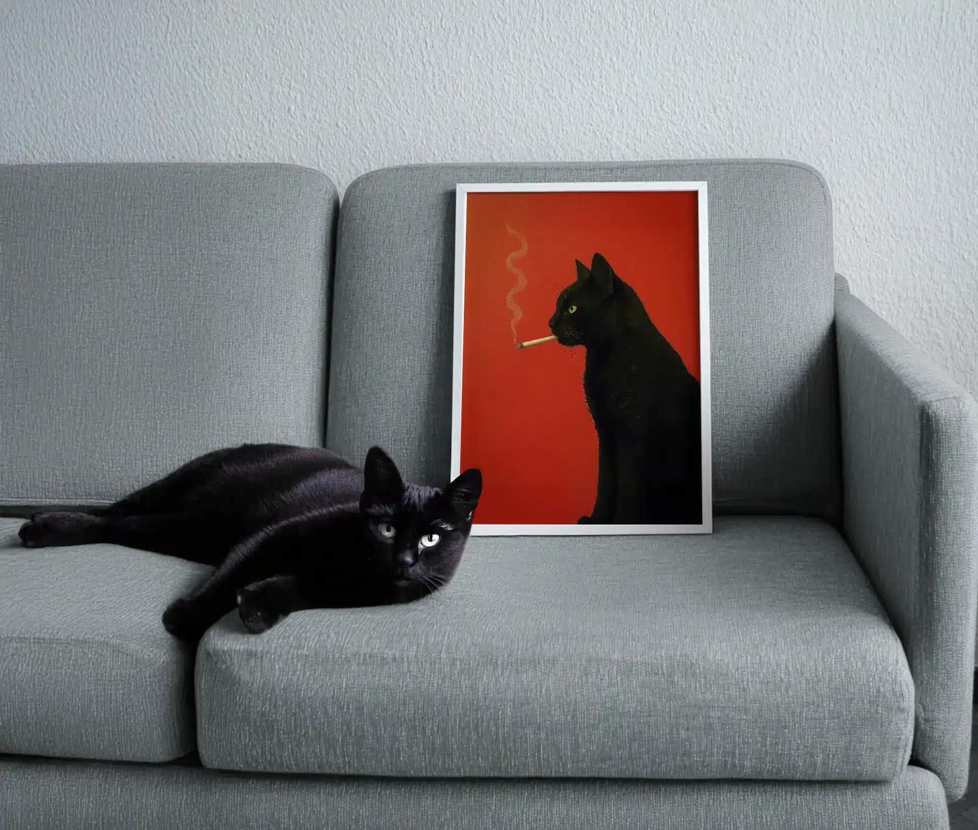 Med sin surrealistiske tilgang og satiriske tone er plakaten en hyldest til dem, der tør skille sig ud. Den sorte kat bliver nærmest et symbol på selvsikkerhed, individualisme og lidt fandenivoldsk charme. Den er oplagt til det moderne hjem, hvor personlighed, humor og æstetik går hånd i hånd.