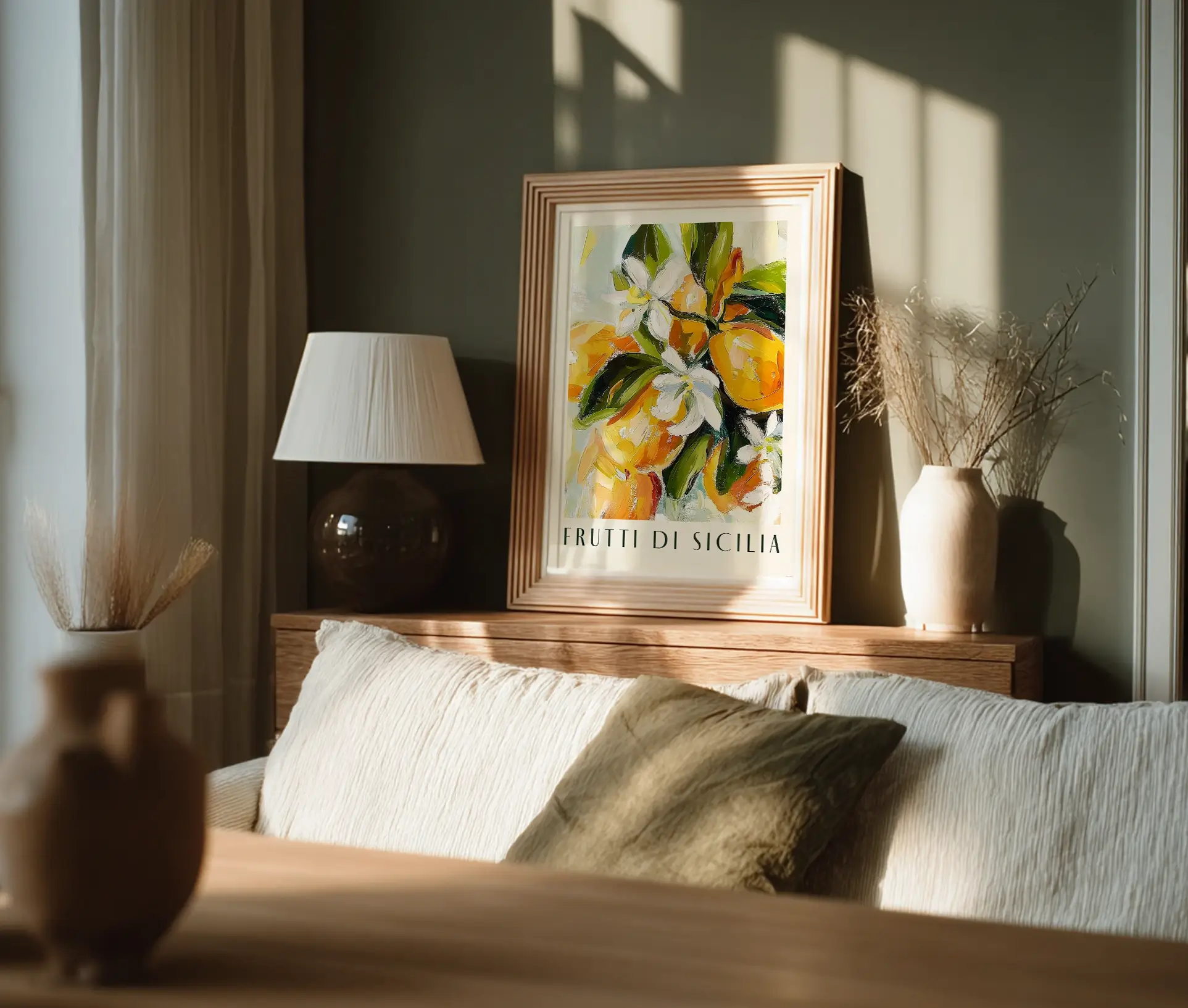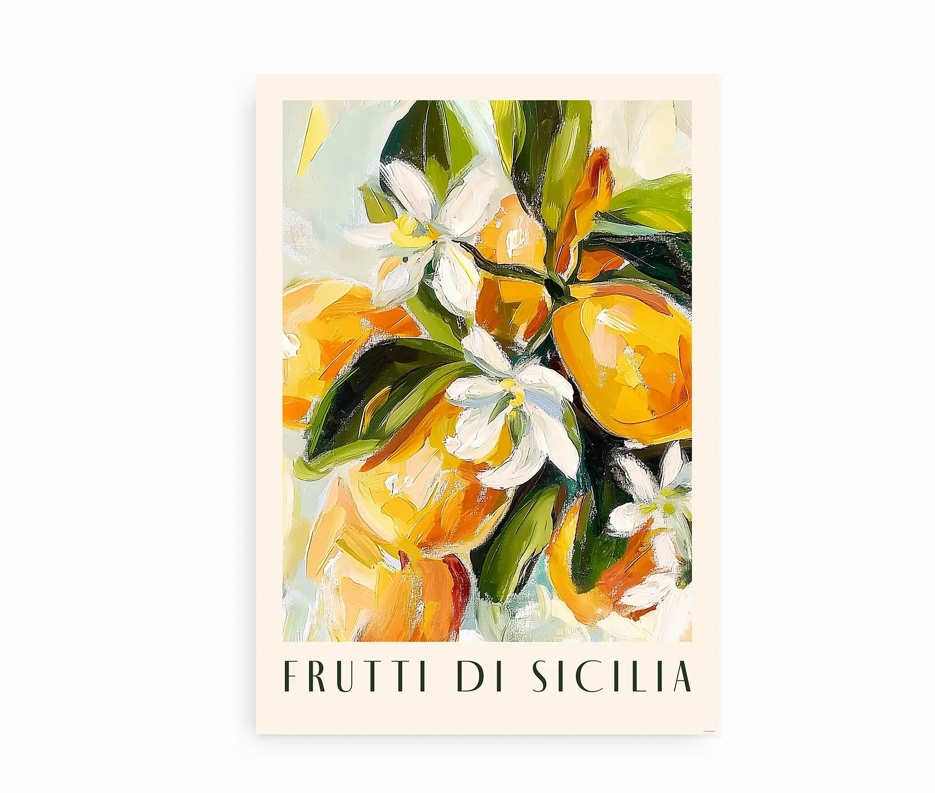 “Frutti di Sicilia”-plakaten emmer af middelhavsstemning og passer smukt i både køkken, stue, sommerhus eller café. Den tilføjer en uformel elegance og et strejf af kunstnerisk flair, der løfter rummet.
