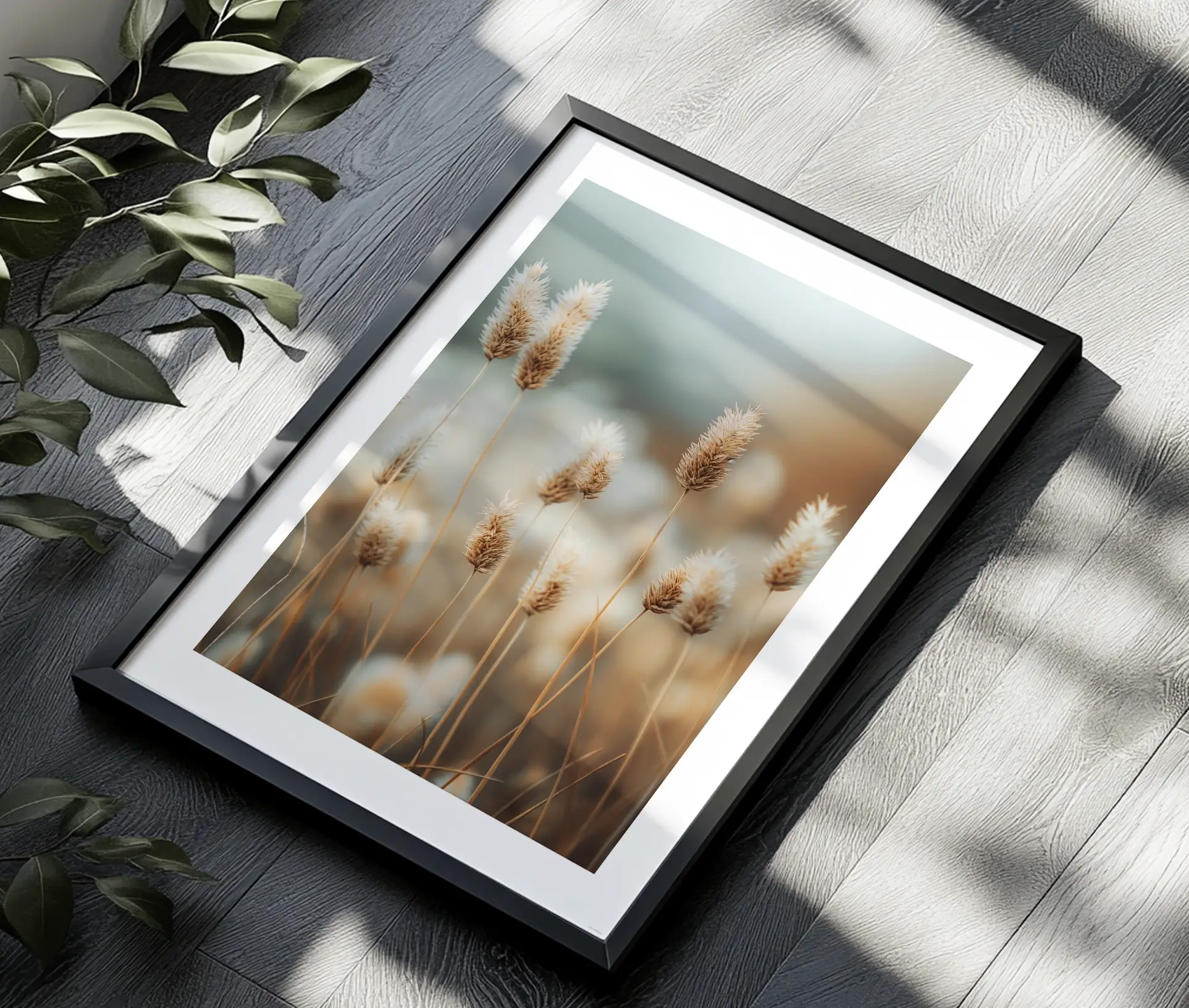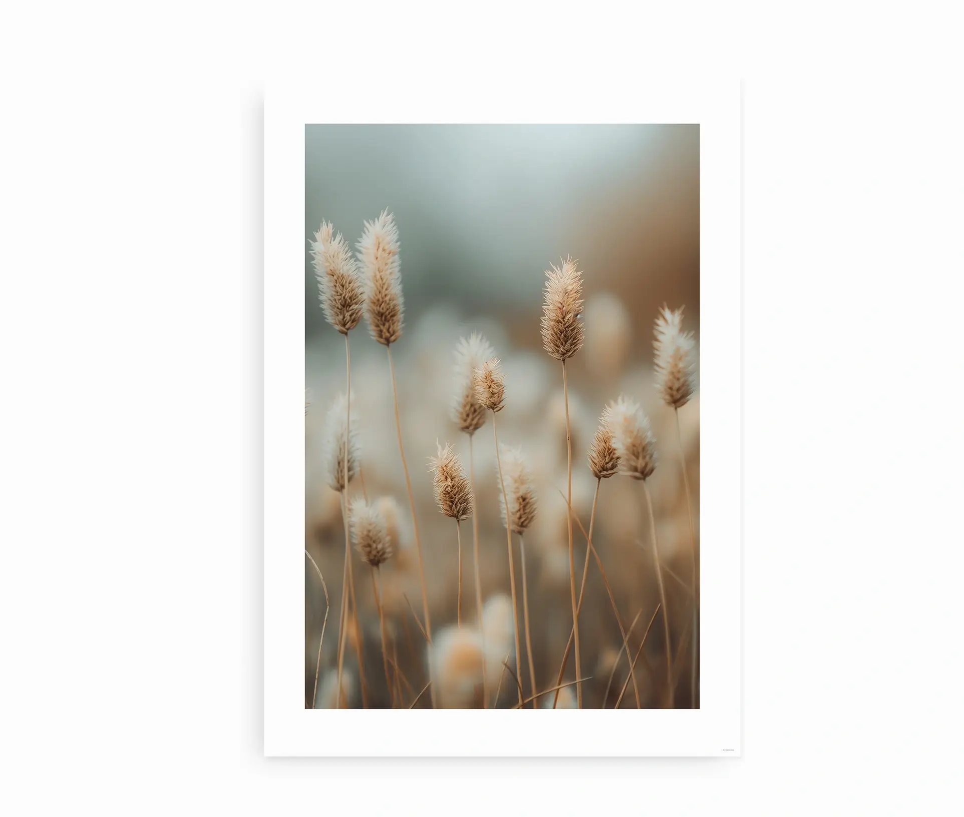 Bring naturens elegance ind i dit hjem med denne “Gyldne Græsstrå”-plakat. Motivet fanger de fine detaljer i tørrede græsstrå, der svajer yndefuldt i vinden. De varme beige og brunlige nuancer kombineret med en blød blågrå baggrund skaber en afslappende og harmonisk stemning.