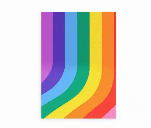 “In Rainbows” er en livlig og grafisk plakat, der hylder farver, optimisme og kreativitet. Med sit stribede regnbuemotiv i klare nuancer af lilla, blå, grøn, gul, orange og rød, tilfører plakaten energi og personlighed til ethvert rum. Designet har et retroinspireret præg med bløde, bølgende former og en let tekstureret baggrund, der giver et legende og moderne udtryk.