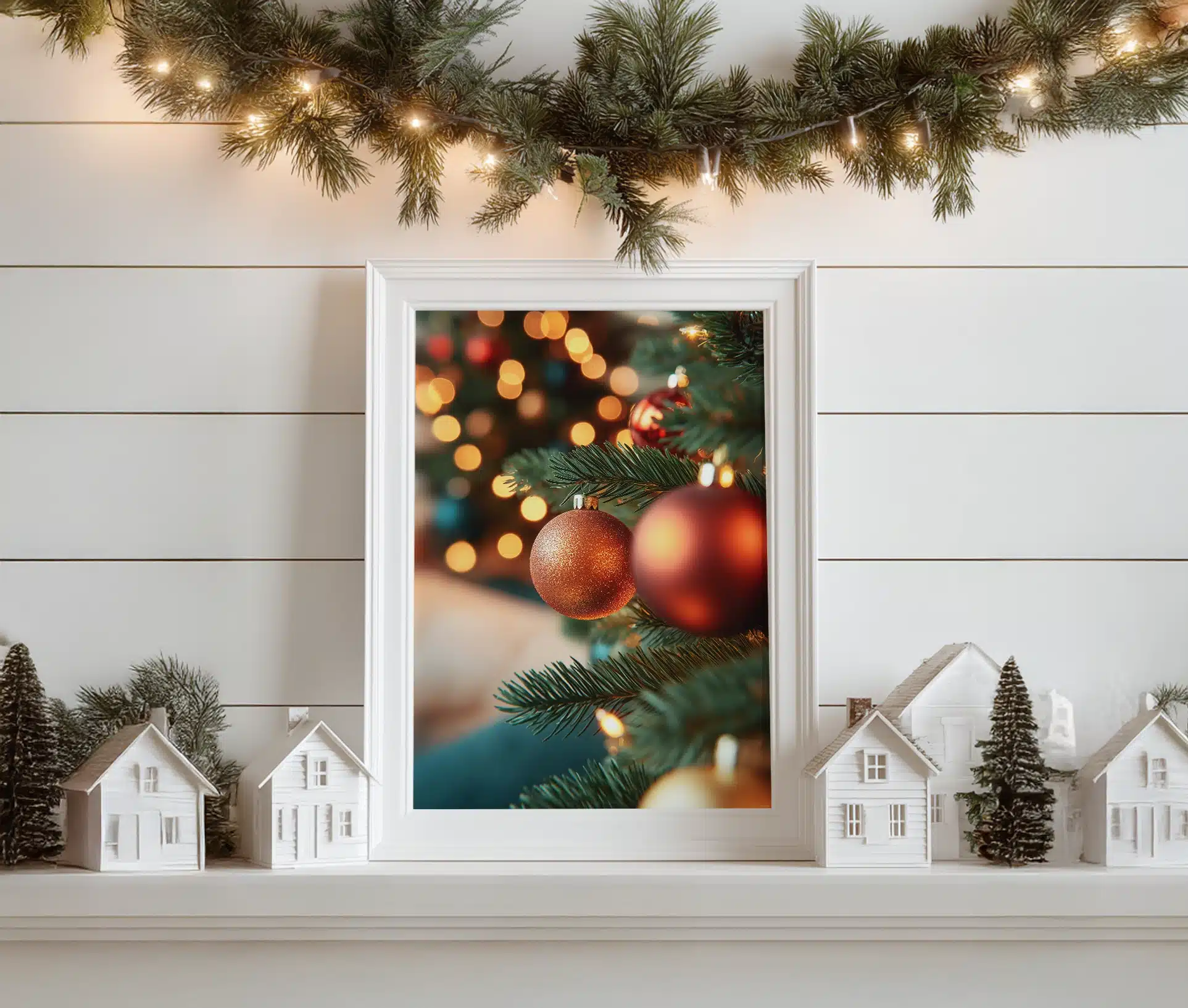 Skab en stemningsfuld og elegant jul med denne smukke Julekugler plakat.