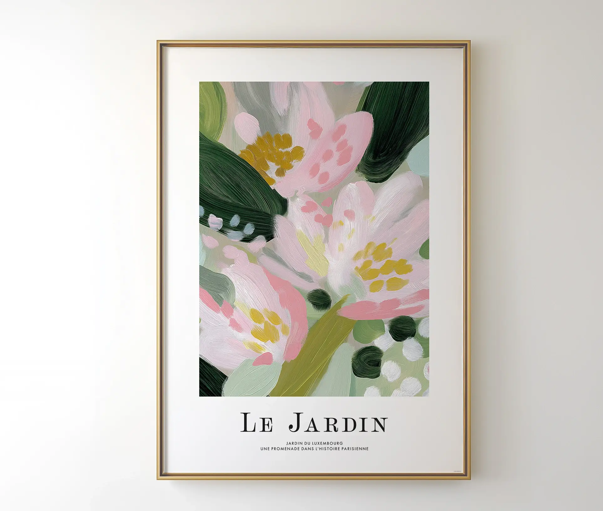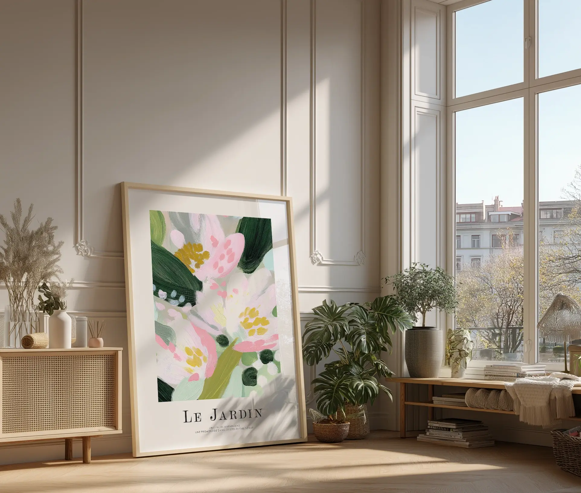 Denne plakat tilfører varme, farve og atmosfære til ethvert rum og skaber en følelse af luksus og harmoni. Uanset om du indretter med nordisk minimalisme, romantiske nuancer eller en mere klassisk stil. Så vil Le Jardin være en smuk og inspirerende tilføjelse.