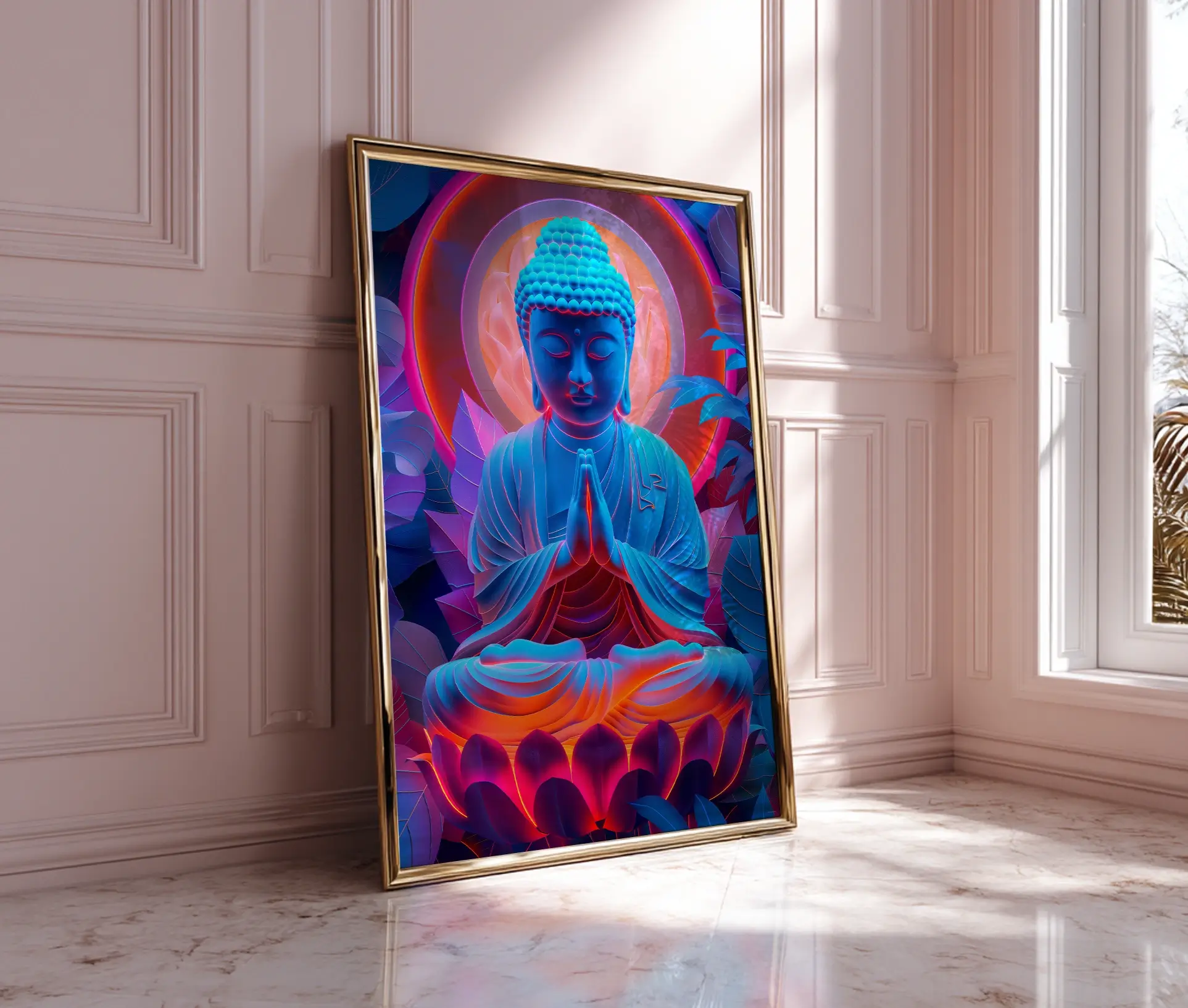 Neon Buddha plakaten passer ind i mange forskellige sammenhænge – fra yogastudie og meditationsrum til stue eller kontor. Den fungerer som en stærk dekorativ detalje og skaber en atmosfære af ro og nærvær, selv i moderne, minimalistiske omgivelser. Plakaten taler til både spirituelle og æstetiske sanser og fungerer som en daglig påmindelse om indre balance og tilstedeværelse.
