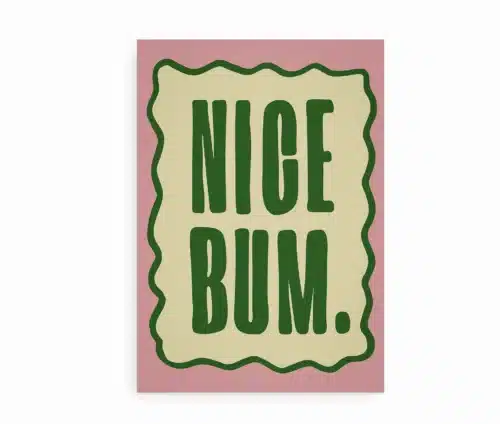 Nice Bum er den perfekte plakat til dig, der elsker indretning med humor. Den enkle, typografiske stil og de retrofarvede nuancer gør den både sjov og æstetisk – ideel til badeværelset, gangen eller soveværelset.