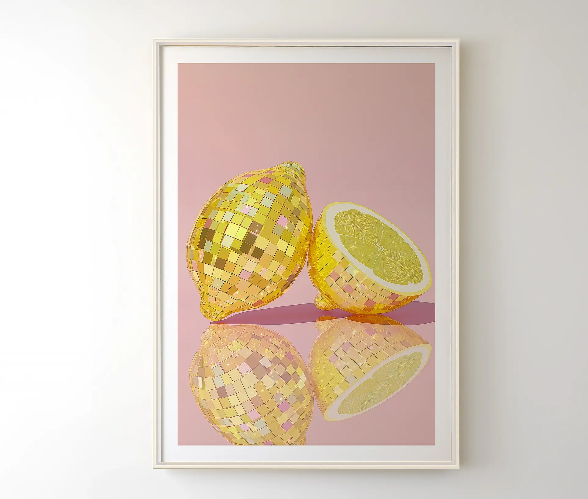Plakaten passer perfekt til dig, der ønsker et kunstværk, som skiller sig ud og giver et frisk pust til indretningen. Den kan hænge i køkkenet og tilføre energi og humor til madlavningen, i stuen som et samtaleemne, eller i en bar- eller loungekrog, hvor dens festlige udtryk virkelig kan komme til sin ret. Kombinationen af citronens friskhed og diskokuglens glamour gør den til et motiv, der både er sjovt, stilfuldt og unikt.