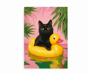 Denne kunstplakat tilfører personlighed og karakter til badeværelset eller gæstetoilettet. Den er oplagt som gaveidé til planteelskere, katte-elskere og alle med sans for grafisk kunst og skæve detaljer i boligindretningen.