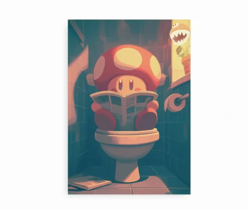 Denne plakat kombinerer legesyge farver med en humoristisk hverdagssituation. Søde Toady fanget i sit mest private øjeblik, midt på toilettet med næsen dybt begravet i en avis. Motivet balancerer perfekt mellem det fjollede og det charmerende. Et hit blandt både spilfans og dem med sans for skæv indretning.