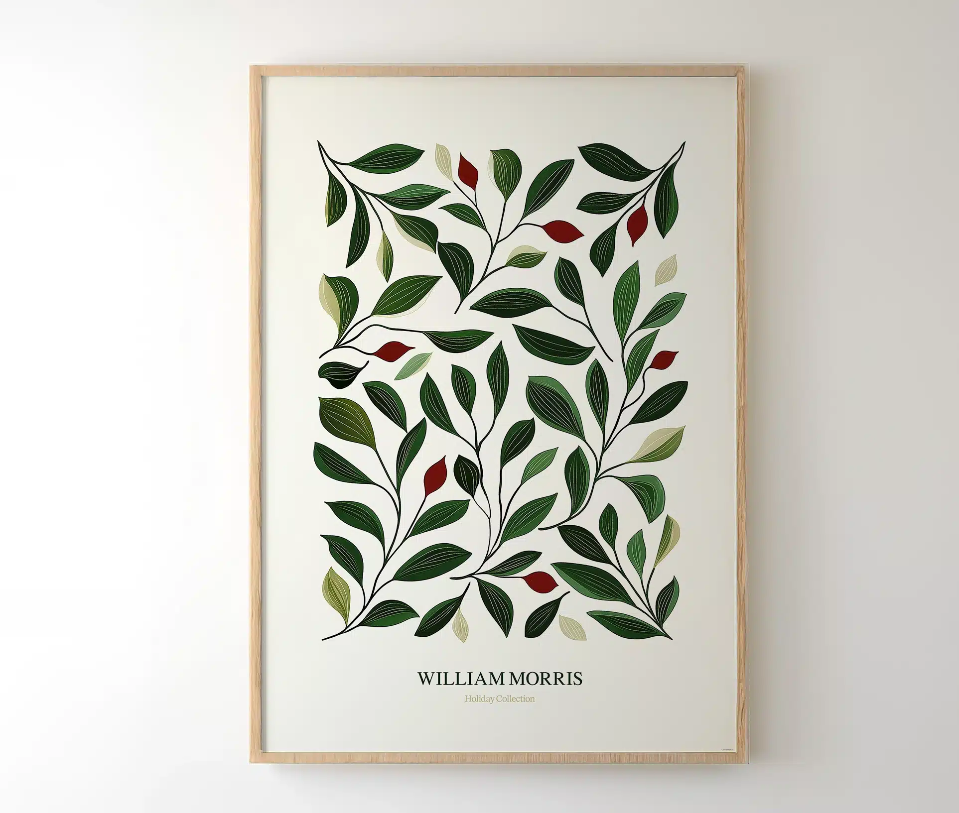 Plakaten forener tidløs elegance med et strejf af jul, hvor de grønne blade og røde bær danner et harmonisk, botanisk mønster. Den afdæmpede farvepalette og de fine linjer gør plakaten ideel til både moderne og klassiske hjem – og den passer perfekt ind i den nordiske juleindretning.
