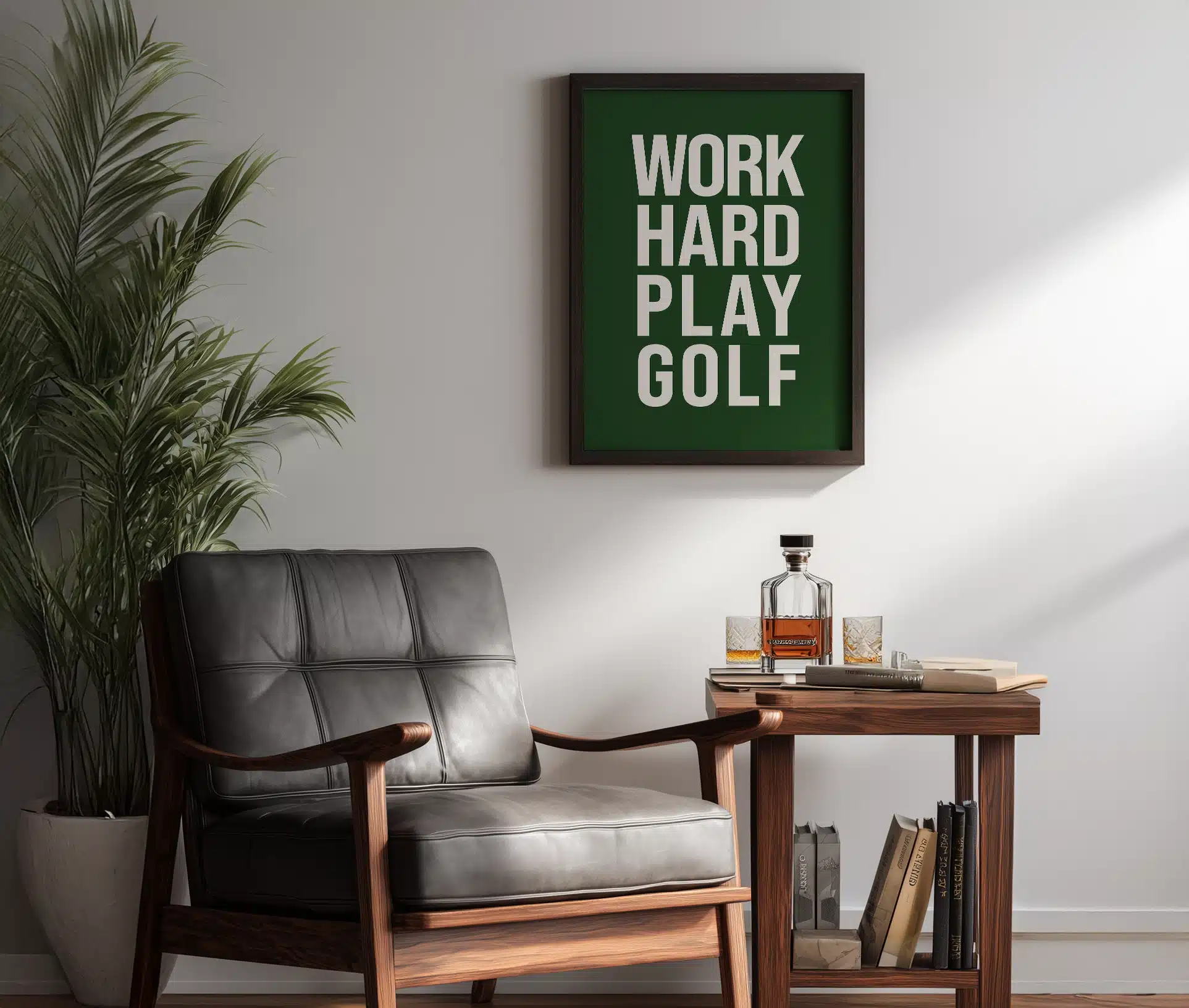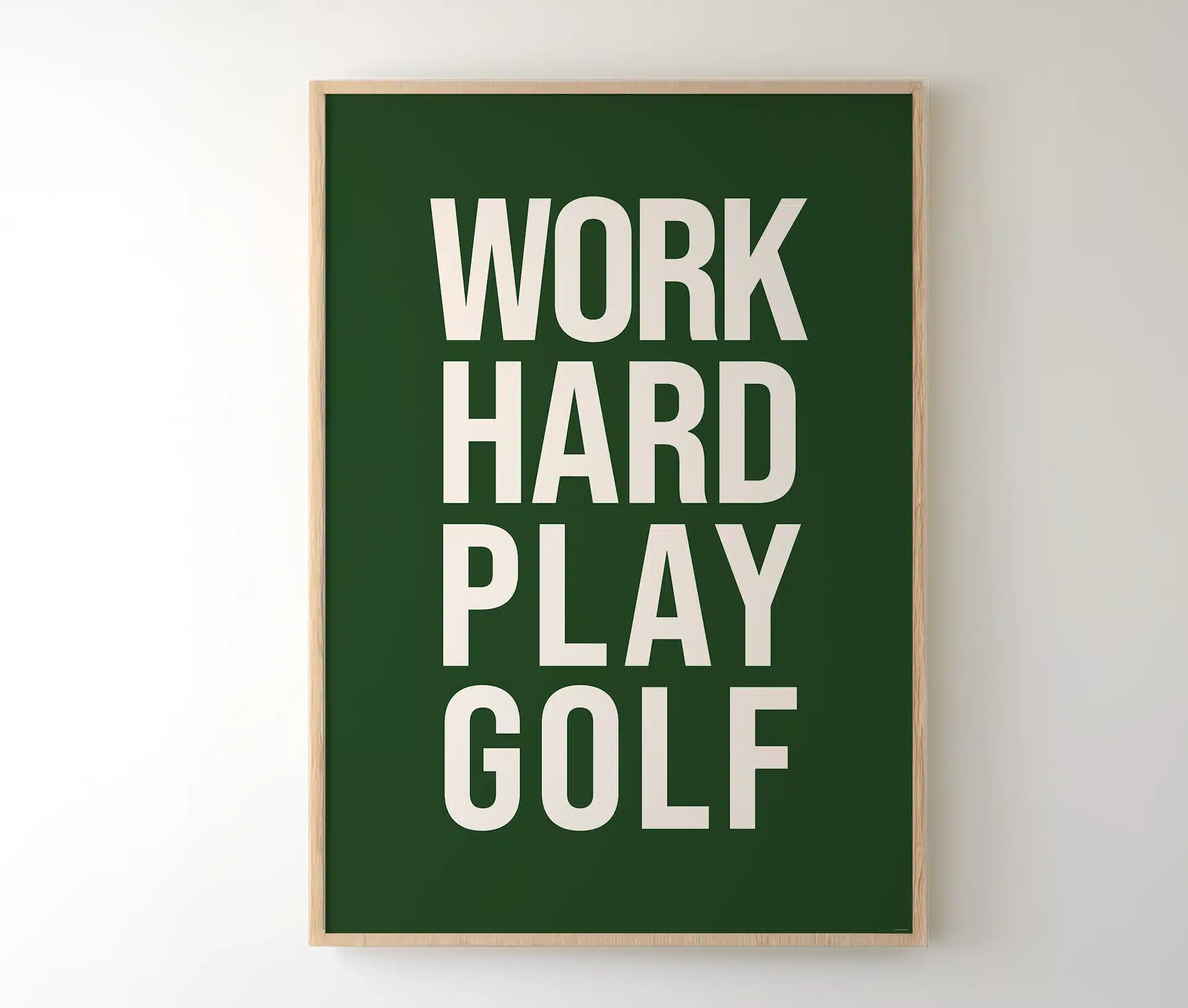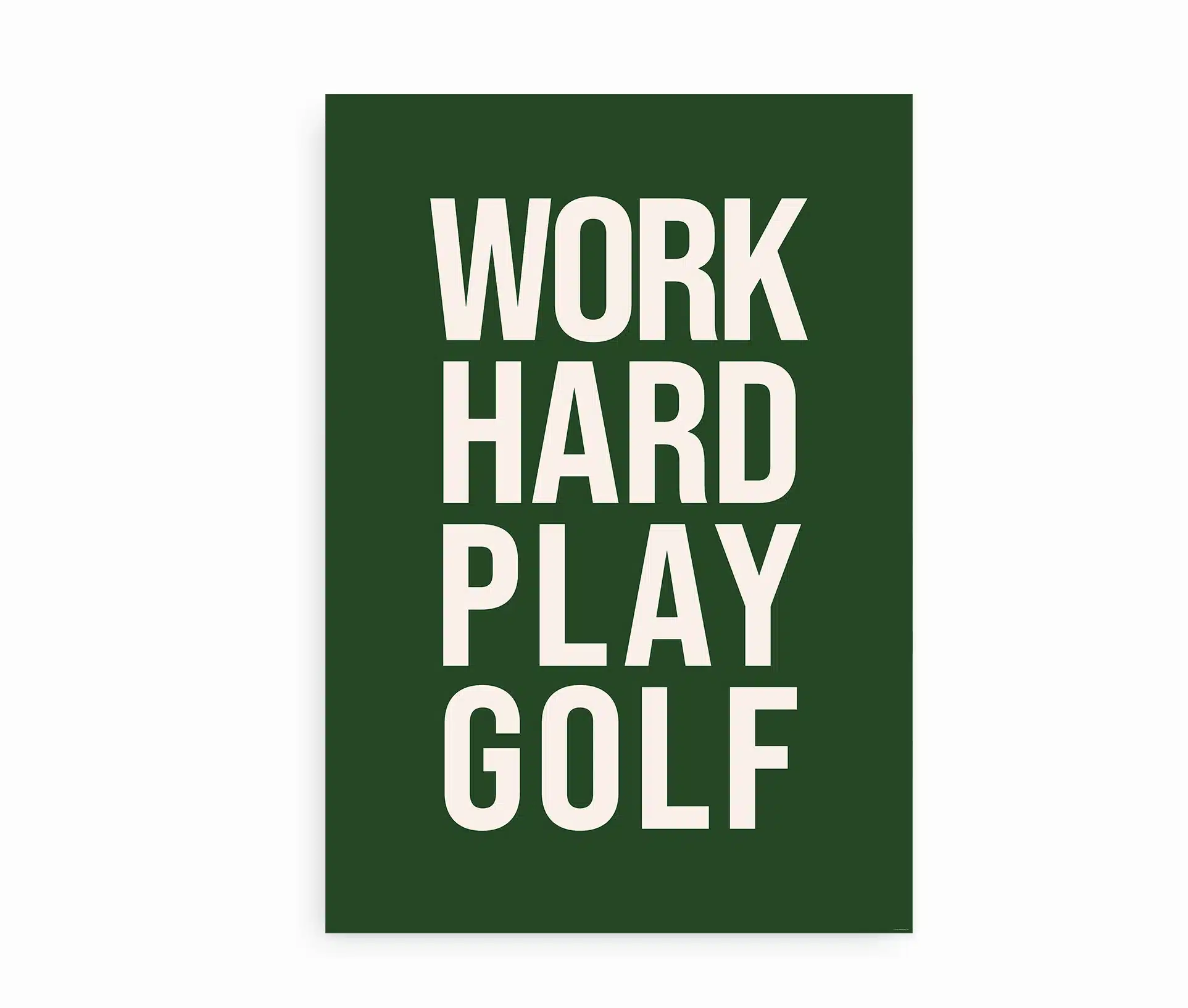 Work Hard Play Golf er plakaten til dig, der lever efter mottoet: gør dit bedste på arbejdet – og nyd det maksimalt, når du rammer fairway. Denne minimalistiske plakat kombinerer stil, attitude og humor i ét rent, grafisk design, der taler direkte til golfentusiasten med sans for æstetik.