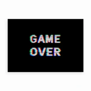 - “Game Over”: En sjov plakat med retro gaming-tema, der viser pixelgrafik og teksten “Game Over”.